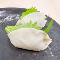 1個に1枚、餃子の餡を国産大葉で包みました。