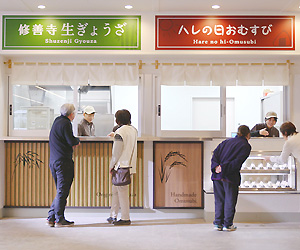 イベントやマルシェ、学校行事や会社行事、地域の皆様の催事などにもご利用頂けるレンタルスペース「yaneひろば」、伊豆や地元の食材も使い、地域の皆様に美味しさを日頃から気軽に楽しんで頂ける、テイクアウト専門店「修善寺ぎょうざ」と「ハレの日おむすび」。それら3つを複合した施設が「うらら修善寺」です。
