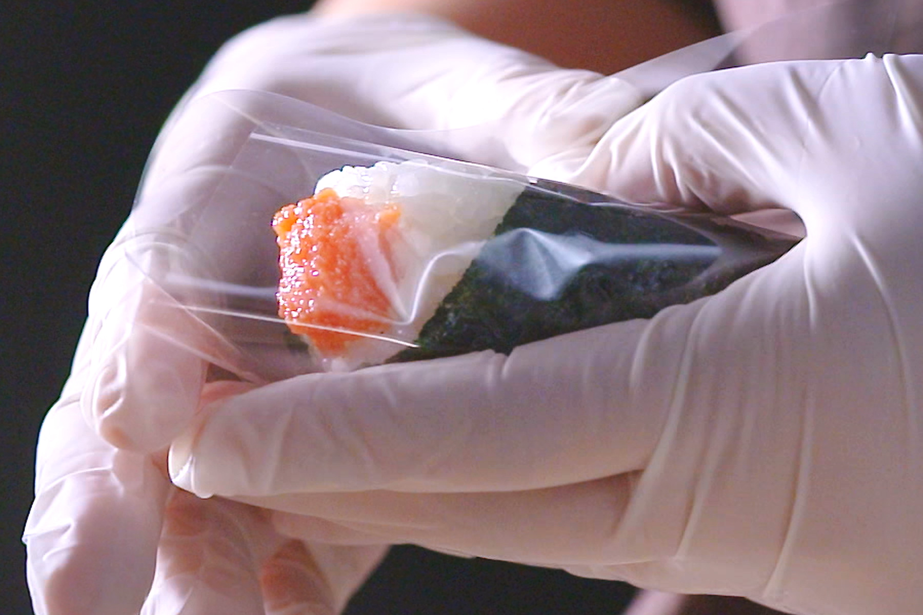 静岡県産「するがの極」は冷めても美味しく、おむすびに最適なお米。焚き上がったご飯は、粘りが強くもちもちとした食感で、噛むほどに優しい甘みが口の中に広がる。口ほどけの良い海苔で「ふわっと」握られた、普段よりちょっとごちそう感のあるおむすび。