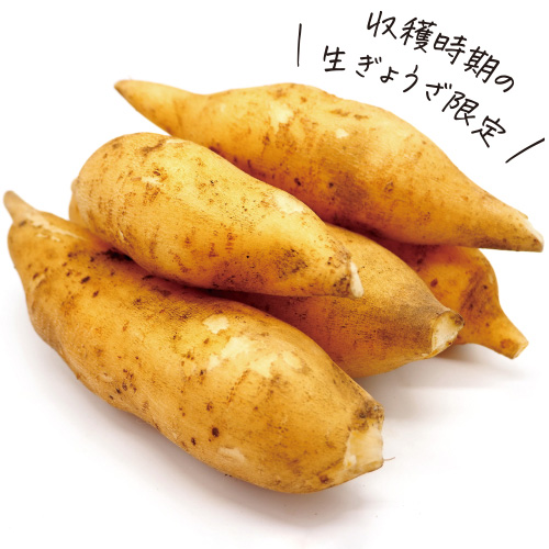 平成11年頃から伊豆市での栽培が始まりました。蓮根のような、梨のようなシャクシャクとした食感が特徴です。芋に含まれるフラクトオリゴ糖は、健康な腸内環境を作ります。また低カロリーで水溶植物繊維も豊富、ダイエットフードと言われるヘルシーな野菜です。そのヤーコンの芋部分のみ食べやすい大きさに丁寧に包丁できざみ、餡に練り込みました。収穫時期のみ生餃子に使用しています。