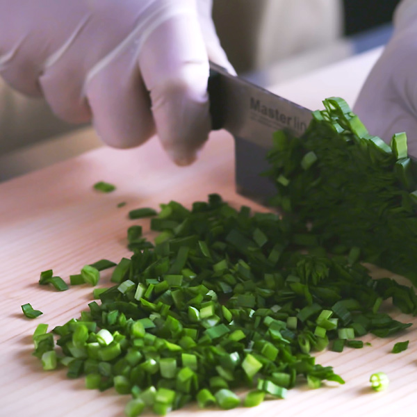 使っているのは国産にんにくと新鮮野菜。1年間変わらぬ美味しさになるよう、季節によって産地や仕入れ先を変えています。根菜・ニラは独特食感になるよう手きざみで。