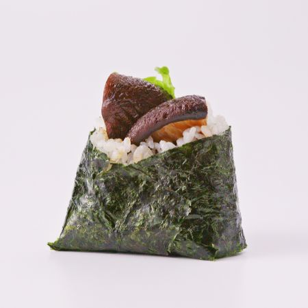 江戸時代から良質な椎茸の産地・伊豆産の原木椎茸を、ふっくら肉厚に感じられるよう、大ぶりに切ってバター醤油焼きに。おむすびに合うよう工夫し具材にしました。香り、歯ごたえ、旨みが違う原木椎茸おむすびをぜひご賞味ください。