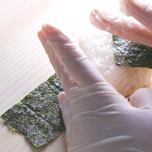 海苔の巻き方を着物を纏ったような「姫巻き」にすることで、おむすびに対しての使用量を増やし、より磯の香り高さと風味を味わえるようにしました。